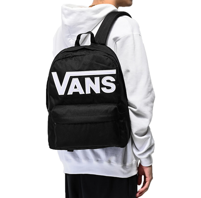 Keep your back to school look simple while showing love to your favorite brand, Vans, with the Old Skool III Black & White Backpack. This black backpack offers a durable canvas construction and displays a bold white Vans logo applique sewn to the front panel. The main storage compartment offers plenty of space for your books, while the front zip pocket offers additional space for your smaller items. A lightly padded back panel and adjustable shoulder straps complete this sleek and simple backpack from Vans.